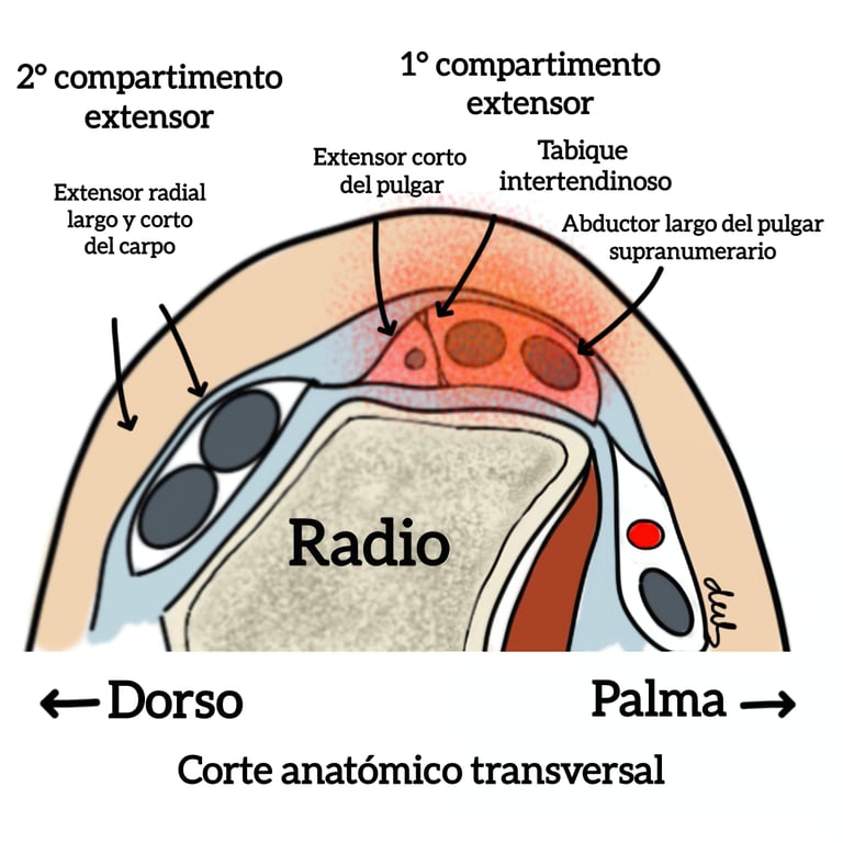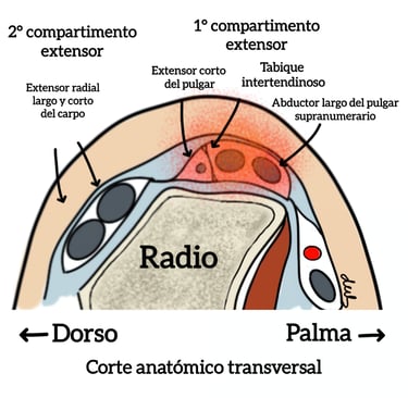 Localización del dolor en el primer compartimento extensor